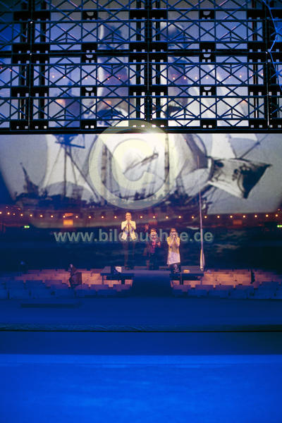 Titel: Failed States One: Somalia. Autor und Regie: Hans-Werner Kroesinger. Ort: HAU Eins, Hebbel am Ufer, Berlin. Ausst.: Valerie von Stillfried. No model release. Copyright: david baltzer/bildbuehne.de. UA: 11. Januar 2013. Darst.: Judica Albrecht, Lajos Talamonti und Nicola Schoessler u.a..