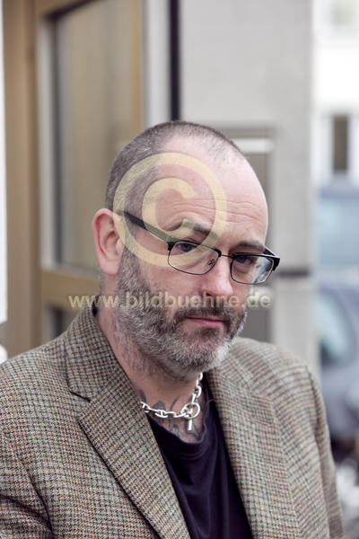 Titel: Der Kuenstler Douglas Gorden bei einem Pressegespraech in der Galerie Blain Southern Berlin, anlaesslich der Eroeffnung seiner Ausstellung " Sharpening Fantasy, 2012 ". Portraet, Berlin, Schoeneberg, 5. Februar 2013. No model release. Copyright: david baltzer/bildbuehne.de.
