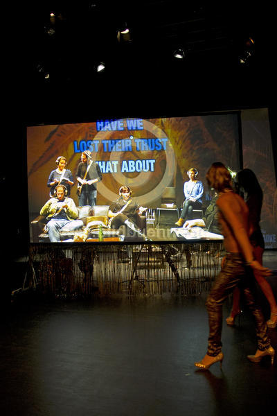 Titel: Western Society. Eine Produktion von Gob Squad. Kooperation mit Center Theatre Group, Spielart und brut, House on Fire. Ort: HAU 2, Hebbel am Ufer. No model release. Copyright: david baltzer/bildbuehne.de. Urauffuehrung: 5. Oktober 2013.