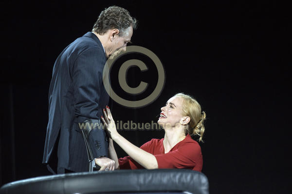Ort: Schaubuehne Berlin. Titel: Die kleinen Fuechse - The little foxes. Autor: Lillian Hellmann. Regie: Thomas Ostermeier. Buehne: Jan Pappelbaum. Kostueme: Dagmar Fabisch. Premiere: 18.01.2014 Darst.: Thomas Bading (Horace Giddens), Nina Hoss (Regina Giddens).