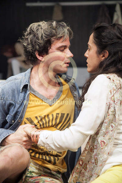 Titel: Der Gast ist Gott. Autoren: Vibhawari Deshpande, Srirang Godbole, Lutz Huebner. Regie: Mina Salehpour. Ort: Grips im Podewil. No model release. Copyright: david baltzer/ bildbuehne.de. Urauffuehrung: 7. Maerz 2014. Darst.: Robert Neumann / Boris und Nina Reithmeier / Radha u.a..