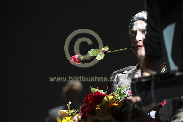 Titel: Der aufhaltsame Aufstieg des Arturo Ui. Autor: Bertolt Brecht. Regie: Tilmann Koehler. Buehne: Karoly Risz. Kostueme: Barbara Drosihn. No model release. Copyright: david baltzer/bildbuehne.de. Premiere: 28. Maerz 2014. Darst.: Jonas Friedrich Leonhardi / Dogsborough u.a..