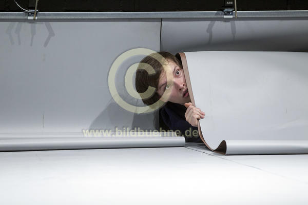 Titel: Supergute Tage - die sonderbare Welt des Christopher Boone. Autor: Mark Haddon, Buehnenfassung Simon Stephens. Regie: Barbara Hauck. Ausst.: Jan A. Schroeder. Video: Silke Pielsticker. Ort: Grips Theater Berlin. Premiere: 7. November 2014. No model release. Copyright: david baltzer/bildbuehne.de. Darsteller: Kilian Ponert / Christopher u.a..