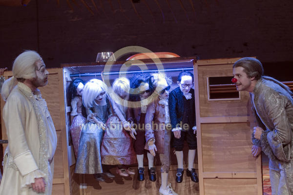 Titel: Der Menschenfeind - Der griesgraemige Verliebte. Autor: Moliere. Regie: Moritz Sostmann. Ausst.: Christian Beck. Puppen: Hagen Tilp. Ort: Schauspiel Koeln im Carlswerk, Depot 2. Premiere: 12. Dezember 2014. No model release. copyright: david baltzer/bildbuehne.de. Darst.: Benjamin Hoeppner / Alceste und Philipp Plessmann / Philinte / Arsinoe u.a..