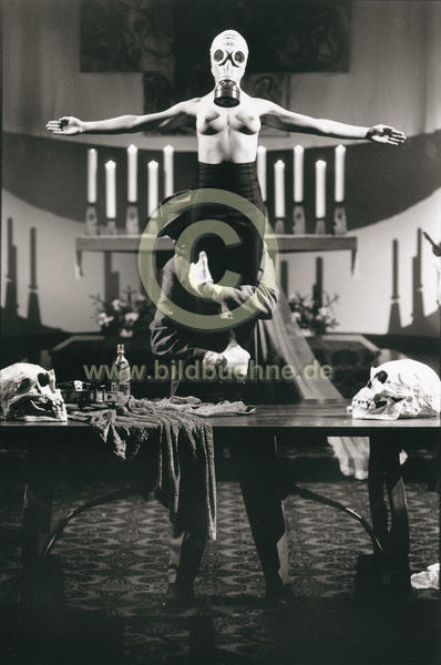 Titel: Gott DADA Grosz. Stueck und Regie: Gerald Uhlig. Ort: St. Matthaeus Kirche, Berlin Tiergarten. Urauffuehrung: 13. Januar 1995. No model release. Copyright: david baltzer/bildbuehne.de. Darsteller: Vanessa Torrico und Oliver Decker u.a..
