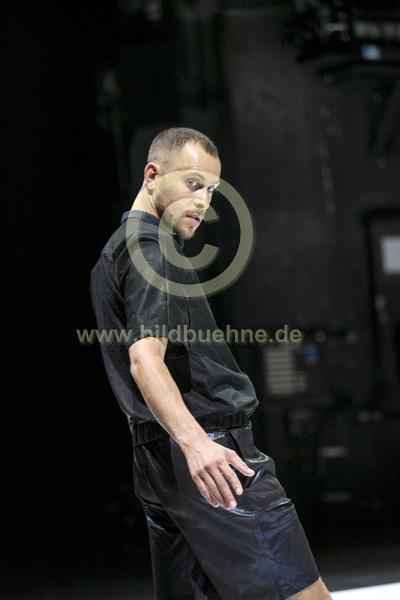Titel: Auto Ficto Reflexo. Von und mit: Adam Linder. Buehne: Shahryar Nashat. Licht: Samuli Laine. Kostuem: Iva Wili. Festival: Tanz im August No 27. Ort: Hinterbuehne des HAU 1. Berlinpremiere: 26. August 2015. No model release. Copyright: david baltzer/bildbuehne.de. Taenzer: Adam Linder u.a..