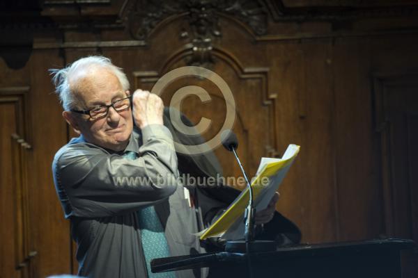 Berliner Ensemble, Foyer. Buchpremiere zum 85. Geburtstag von Rolf Hochhuth am 1. April. HOCHHUTH - DER STOERENFRIED. Mit Rolf Hochhuth und Birgit Lahann (Biografin). 13.03.2016