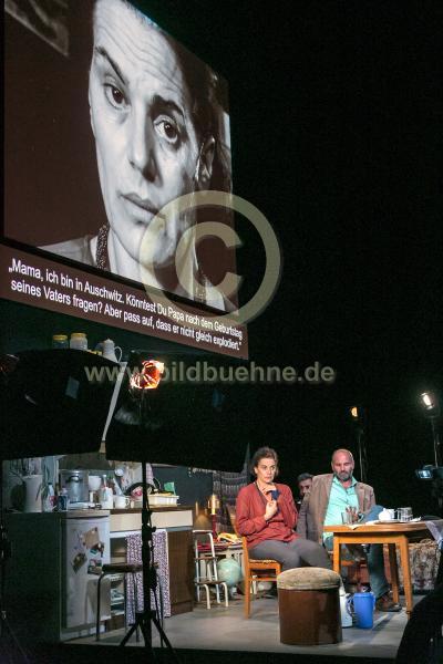 Titel: Empire. Konzept und Regie: Milo Rau, Text zus. mit dem Ensemble. Ausstg.: Anton Lukas. Video: Marc Stephan. Produktion des IIPM - International Institute of Political Murder. UA: 1.9.16 Theaterspektakel Zuerich. Berlinpremiere: 8. Semptember 2016. Ort: Schaubuehne Berlin. No model release. Copyright: david baltzer / bildbuehne.de. Darsteller: Maia Morgenstern und Ramo Ali, Akillas Karazissis und Rami Khalaf an der Kamera u.a..