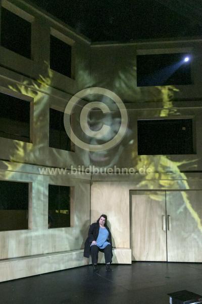 Titel: Gross und Klein. Autor: Botho Straus. Regie: Lilja Rupprecht. Buehne: Anne Ehrlich. Kostueme: Annelies Vanlaere. Ort: Schauspiel Koeln im Carlswerk Depot 1. Premiere: 14. Oktobe 2016. No model release. Copyright: david baltzer / bildbuehne.de. Spieler: Sabine Orleans / Lotte und Nicola Gruendel / Meggy u.a..