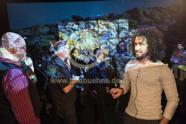 Ort: Deutsches Theater Box, Berlin. Titel: Lesbos - Blackbox Europa. Ein Projekt von Gernot Gruenwald und Ensemble. Regie: Gernot Gruenwald. Buehne & Kostueme: Michael Koepke. Video: Isabel Robson. UA: 26.01.2017