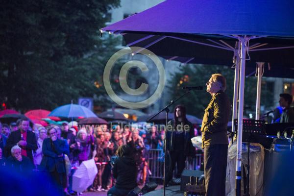 Ort: Volksbuehne Berlin. Abschiedsfest vor dem Theater und auf der gesamten Rosa-Luxemburg-Strasse nach der letzten Vorstellung von "Baumeister Solness" am 1. Juli 2017, dem Ende der Aera Castorf. Hier: Frank Castorf. Copyright: Marcus Lieberenz/bildbuehne.de (Veroeffentlichung nur gegen Honorar und Belegexemplar!)