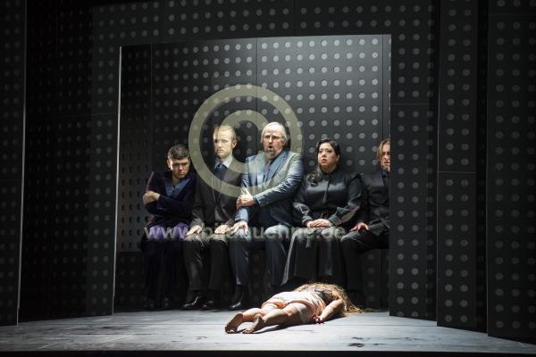 Ort: Komische Oper berlin. Titel: Pelleas et Melisande. Autor: Claude Debussy. Musikal. Leitung: Jordan de Souza. Inszenierung: Barrie Kosky. Buehne und Licht: Klaus Gruenberg. Kostueme: Dinah Ehm. Premiere: 15.10.17 Darst.: Dominik Koeninger (Pelleas), Samuli Taskinen (Ein Arzt, Stimme des Hirten), Jens Larsen (Arkel), Nadine Weissmann (Genevieve), Guenther Papendell (Golaud), Nadja Mchantaf (Melisande, u.). Copyright: Marcus Lieberenz/bildbuehne.de (Veroeffentlichung nur gegen Honorar und Belegexemplar!)