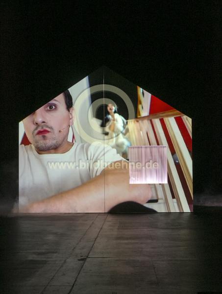 Titel: Mary Page Marlowe. Autor: Tracy Letts. Regie: Lilja Rupprecht. Buehne: Anne Ehrlich. Kostueme: Annelies Vanlaere. Video: Moritz Grewenig. Licht: Hartmut Litzinger. Ort: Schauspiel Koeln im Carlswerk, Depot 1. Premiere: 24. November 2017. No model release. Copyright: david baltzer/bildbuehne.de. Spieler*Innen: Nicola Gruendel und Stefko Hanushevsky u.a..