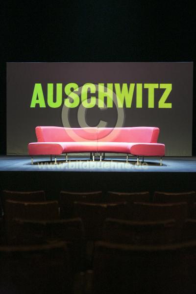 " Friedman im Gespraech ". 3. Veranstaltung am 73. Jahrestag der Befreiung von Auschwitz: mit Sigmar Gabriel. Grosses Haus, Samstag, 27. Januar 2018. No model release. Copyright: david baltzer/bildbuehne.de. Michel Friedman befragt Sigmar Gabriel wie das Gedenken wachgehalten werden kann und ob die Selbstermaechtigung der gut 15 % dauerhaft Rechtsnationalen zu einer Bedrohung der dt. Demokratie werden können. Die Buehneneinrichtung fuer das Gespraech.
