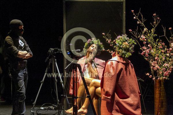 Titel: Creation (Pictures for Dorain). Nach Motiven von Oscar Wildes. Konzept und Regie: Gob Squad. Kostueme: Ingken Benesch. Buehne: Lena Mody. Video: Miles Chalcraft. Licht: Chris Umney. Ort: HAU Zwei Hebbel am Ufer. Urauffuehrung: 4. Mai 2018. No model release. copyright: david baltzer/bildbuehne.de. Spieler*Innen: Bastian Trost und als Gast: Christopher Adams-Cohen u.a..