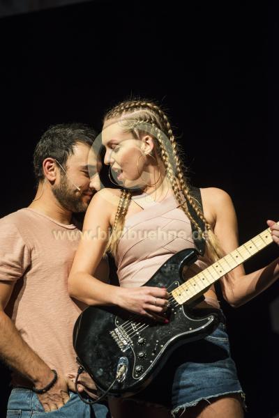 Ort: Maxim Gorki Theater, Berlin. Titel: Yes but No. Autor: Yael Ronen und Ensemble. Regie: Yael Ronen. Buehne: Magda Willi. Kostueme: Amit Epstein. Premiere: 07.09.18 Darst.: Taher Sahintuerk, Riah May Knight. Copyright: Marcus Lieberenz/bildbuehne.de (Veroeffentlichung nur gegen Honorar und Belegexemplar!)