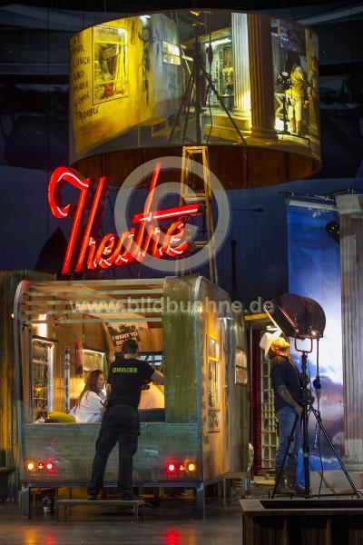 Titel: Das 1. Evangelium. Regie und Konzept: Kay Voges. Buehne: Michael Sieberock-Serafimowitsch. Kostueme: Mona Ulrich. Video: Voxi Baerenklau, Robi Voigt. Dramaturgie: Anna Haas, Jan Hein. Ort: Volksbuehne Berlin. Urauffuehrung: 19. Januar 2018 im Schauspiel Stuttgart. Uebernahmepremiere Berlin: 1. November 2018. No model release. Spieler*Innen: Julischka Eichel und Ensemble u.a..