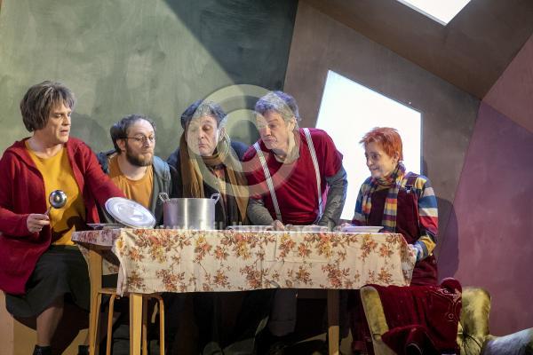 "Engl:" theatre, actor, comedy, familiy, eating, table