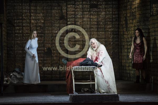 Ort: Staatsoper, Berlin. Titel: Babylon. Autor: Joerg Wiedmann, Peter Sloterdijk (Text). Musikal. Leitung: Christopher Ward. Inszenierung: Andread Kriegenburg. Buehne: Harald Thor. Kostueme: Tanja Hofmann. UA: 09.03.19 Darst.: Mojca Erdmann (Die Seele), Charles Workman (Tammu), John Tomlinson (Der Pristerkoenig), Susanne Elmark (Inanna). Copyright: Marcus Lieberenz/bildbuehne.de (Veroeffentlichung nur gegen Honorar und Belegexemplar!)