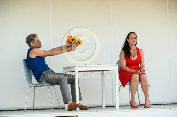 Ort: Globe Theater Berlin. Titel: Nach dem Kuss. Autor: Oliver Bukowski. Regie: Anselm Lipgens. Musik: Bernd Medek. Buehnenbild & Kostuem: Thomas Lorenz-Herting. Premiere: 24.07.19 Mit: Andreas Uehlein (Hajo Majo), Anja Lechle (Heike), Johanna Paliege (Reni / Alexa), Magdalena Thalmann (Juliane), Mick Morris Mehnert (Dieter), Sebastian von Malfer (Andy), Ted Siegert (Robbi), Uwe Neumann (Roepenack). Copyright: Marcus Lieberenz/bildbuehne.de (Veroeffentlichung nur gegen Honorar und Belegexemplar!)