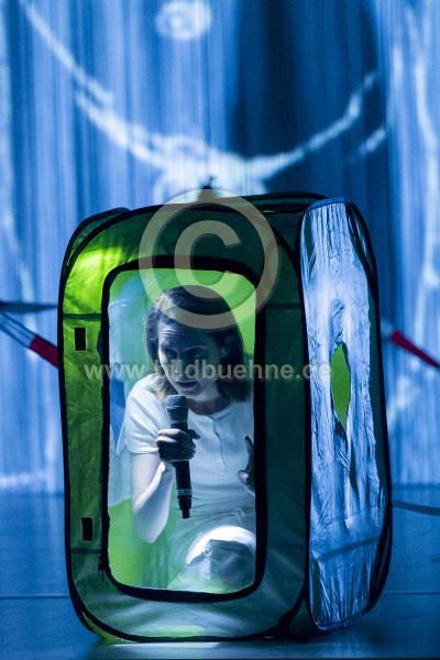 Ort: Gorki Theater. Urauffuehrung: 2. Oktober 2020. no model release. Spielerin: Lea Draeger bei ihrem Solo in einem kleinen Zelt u.a.. Theater mit Hygienekonzept unter den Abstandsregeln der Corona Pandemie.