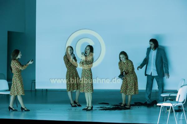 Titel: Orfeo ed Eurodice. Autor: Christoph Willibald Gluck - Wiener Fassung. Regie: Damiano Michieletto. MusikLtg: David Bates. Choreografie: Thomas Wilhelm. Buehne: Paolo Fantin. Kostueme: Klaus Bruns. Licht: Alessandro Carletti. Chor: David Cavelius. Dramaturgie: Simon Berger. Ort: Komische Oper. Premiere: 23. Januar 2022. no model release. SaengerInnen: Carlo Vistoli / Orfeo und Nadja Mchantaf / Euridice, Josefine Mindus / Amore und drei Taenzerinnen: Claudia Greco, Ana Dordevic, Martina Borroni u.a.. Hygienekonzept im Theater aufgrund der Corona Pandemie.