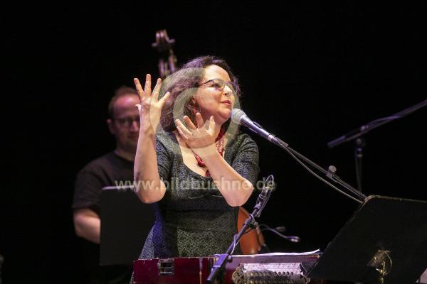 Titel: Songs of Wounding - Solidaritaetskonzert fuer die Ukraine. Veranstalter: Allianz Kulturstiftung und Outernational in Kooperation mit der Akademie der Kuenste Berlin. Konzept, Recherche und Gesang: Mariana Sadovska. Komposition: Max Andrzejewski. no model release. Saengerin: Mariana Sadovska. MusikerInnen: Pavel Zuzanski und Rebecca Beyer / Violine, Andreas Arend / Theorbe, Lea Rahel Bader / Gambe, James Banner / Kontrabass und Max Andrzejewski / Schlagzeug.