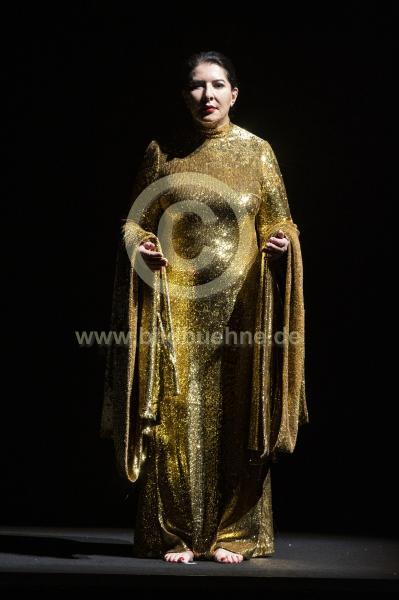 Ort: Deutsche Oper Berlin. Titel: 7 Deaths of Maria Callas. Regie und Buehne: Marina Abramovic. Musik: Marko Nikodijevic. Autoren: Marina Abramovic, Petter Skavlan. Musikalische Leitung: Yoel Gamzou. Premiere: 08.04.2022 Mit Marina Abramovic (Filmdarstellerin und Performerin), Willem Dafoe (Filmdarsteller) und Mané Galoyan (Violetta Valéry), Diana Gouglina (Floria Tosca), Valeriia Savinskaia (Desdemona), Antonia Ahjoung Kim (Cio-Cio San), Irene Roberts (Carmen), Adela Zaharia (Lucia), Flurina Stucki (Norma). Copyright: Marcus Lieberenz/bildbuehne.de (Veroeffentlichung nur gegen Honorar und Belegexemplar!)