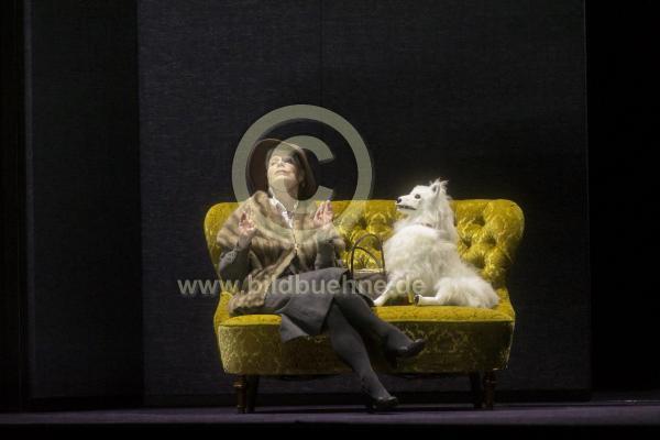 Titel: Ich hab die Nacht getraeumt - Ein Schauspiel mit Musik. Autorin und Regie: Andrea Breth. Buehne: Raimund Orfeo Voigt. Kostueme: Jens Kilian. Musik. Ltg: Adam Benzwi. Licht: Alexander Koppelmann. Dramaturgie: Sibylle Baschung. Ort: Berliner Ensemble. Urauffuehrung: 16. Maerz 2023. No model release. Spielerin: Corinna Kirchhoff u.a..