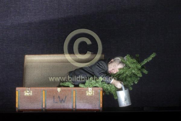 Titel: Ich hab die Nacht getraeumt - Ein Schauspiel mit Musik. Autorin und Regie: Andrea Breth. Buehne: Raimund Orfeo Voigt. Kostueme: Jens Kilian. Musik. Ltg: Adam Benzwi. Licht: Alexander Koppelmann. Dramaturgie: Sibylle Baschung. Ort: Berliner Ensemble. Urauffuehrung: 16. Maerz 2023. No model release. Spieler: Peter Lupa u.a..