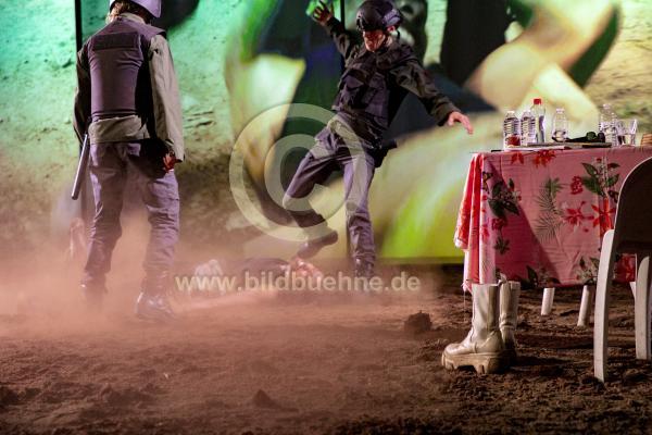 Engl.: Milo Rau brings together the Antigone material with the oppression of the landless in Brazil at the NT Gent. The premiere with videos of the re-enactment of a massacre there in the rainforest will take place in Gent on 13 May 2023. theatre, actor, political theatre, documentar theatre, Trilogy of Ancient Myths.