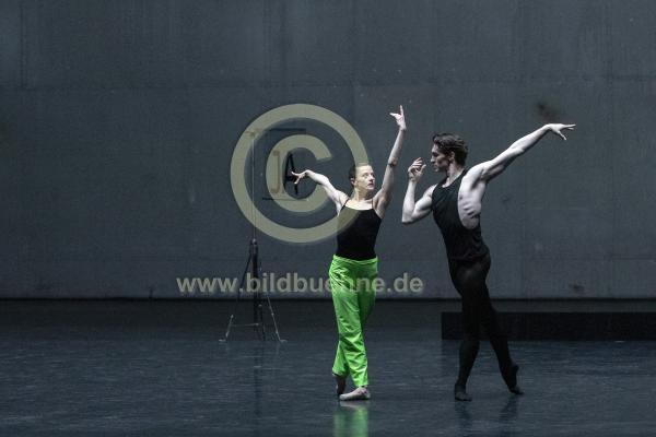 Titel: William Forsythe: Approximate Sonata 2016. Coreographie, Buehne, Licht: William Forsythe. Staatsballett Berlin. Ort: Deutsche Oper Berlin. Premiere: 16. Februar 2024. No model release. TaenzerInnen: Cohen Atchison-Dugas und Weronika Frodyma u.a..