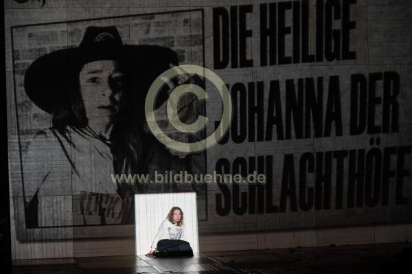 Ort: Berliner Ensemble. Titel: Die Heilige Johanna der Schlachthoefe. Autor: Bertold Brecht. Regie & Buehne: Dusan David Parizek. Kostueme: Kamila Polivkova. Premiere: 27.02.25 Darst.: Kathleen Morgeneyer (Johanna Dark). Copyright: Marcus Lieberenz/bildbuehne.de (Veroeffentlichung nur gegen Honorar und Belegexemplar!)