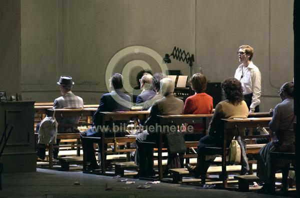 Volksbuehne Berlin, "Die Zehn Gebote" Ein Abend von Christoph Marthaler nach Raffaele Viviani, Regie: Christoph Marthaler, Buehne & Kostueme: Anna Viebrock, Musikal. Leitung: Clemens Sienknecht, Premiere: 19. Oktober 2001