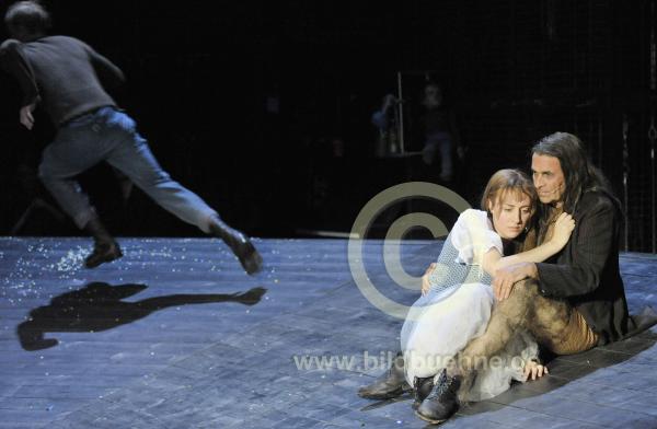 Darst.: Moritz Grove (Woyzeck), Maren Eggert (Marie), Markus Graf (Ausrufer, Karl). (v.l.n.r.)